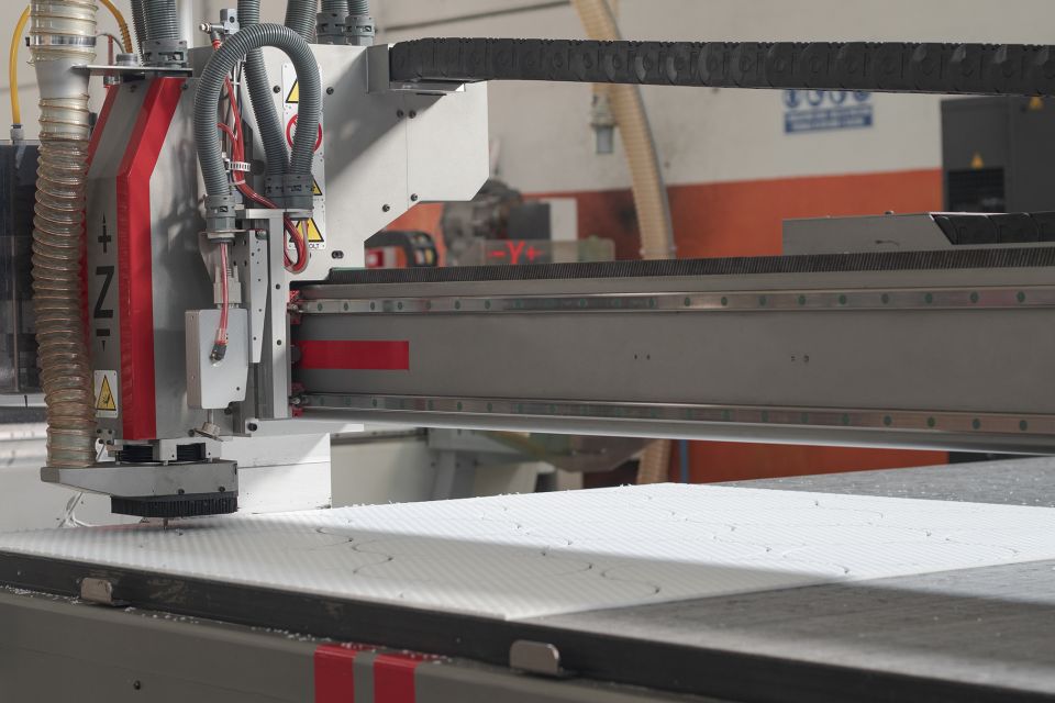 Il campo di lavoro è molto ampio (2050 x 3075 mm) e la velocità di lavorazione è molto elevata (fino a 80 mt/min) oltre ad una altissima precisione del taglio e ad una finitura eccellente.